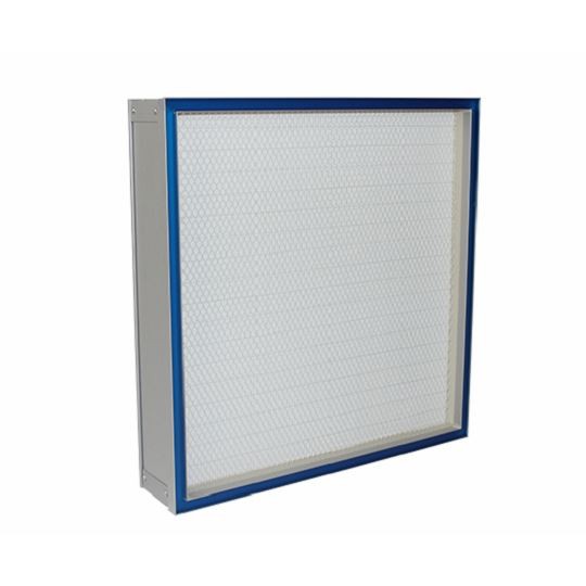 HEPA Box Typ Filter: HEPA-filter är mycket effektiva för att fånga upp mycket små partiklar, inklusive bakterier och virus. Designen av boxtyp ger en stor filtreringsyta, vilket hjälper till att upprätthålla ett lågt tryckfall över filtret. Detta minskar risken för övertryck i systemet. Filtret är också tätt förseglat för att förhindra eventuell förbiledning av partiklar, vilket garanterar maximal säkerhet.